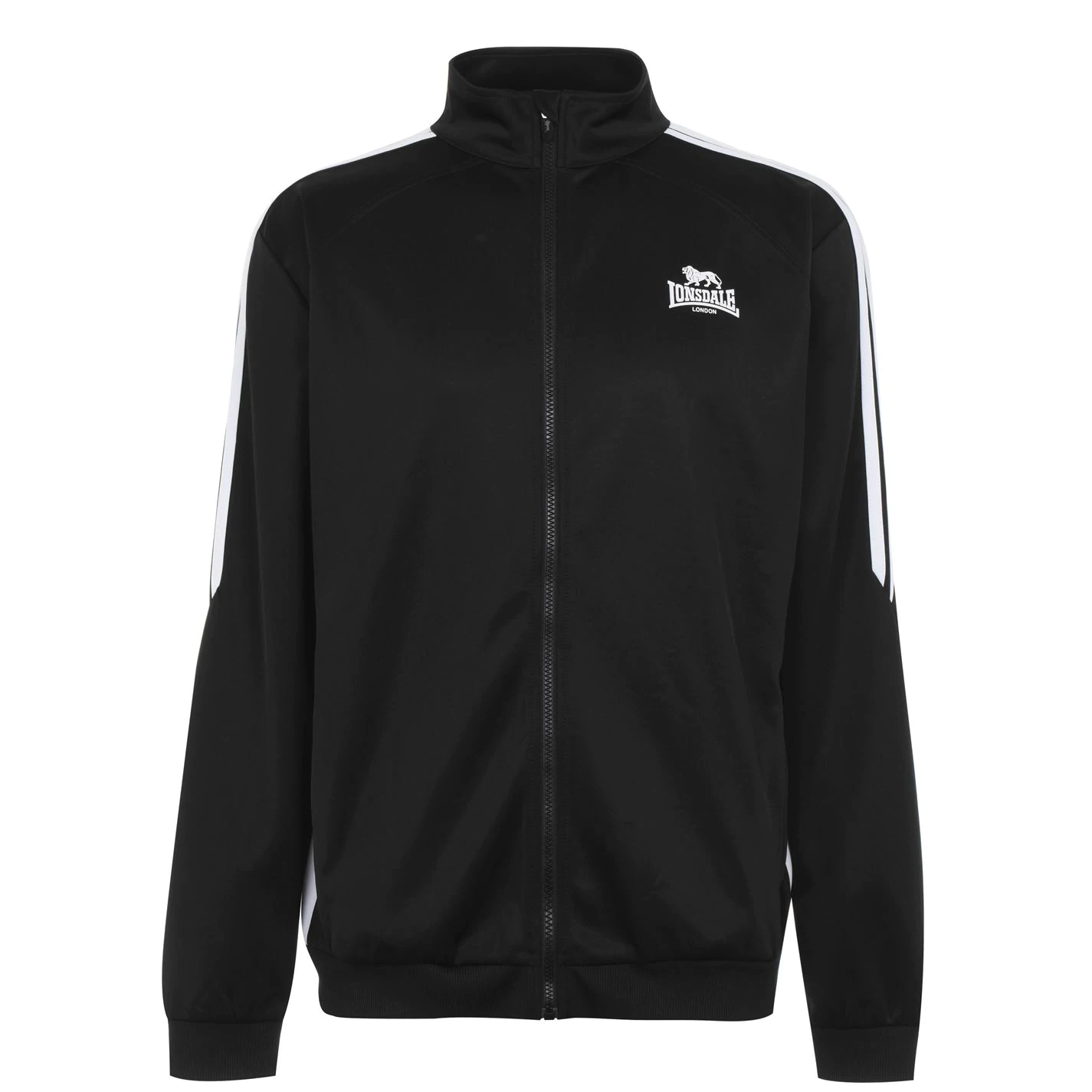 Update your casual look with this Men’s Lonsdale Two Stripe Tracksuit Top. The classic design is perfect for everyday wear, with ribbed trims ensuring a secure fit. The sides are adorned with striped detailing, and the look is completed with Lonsdale branding.