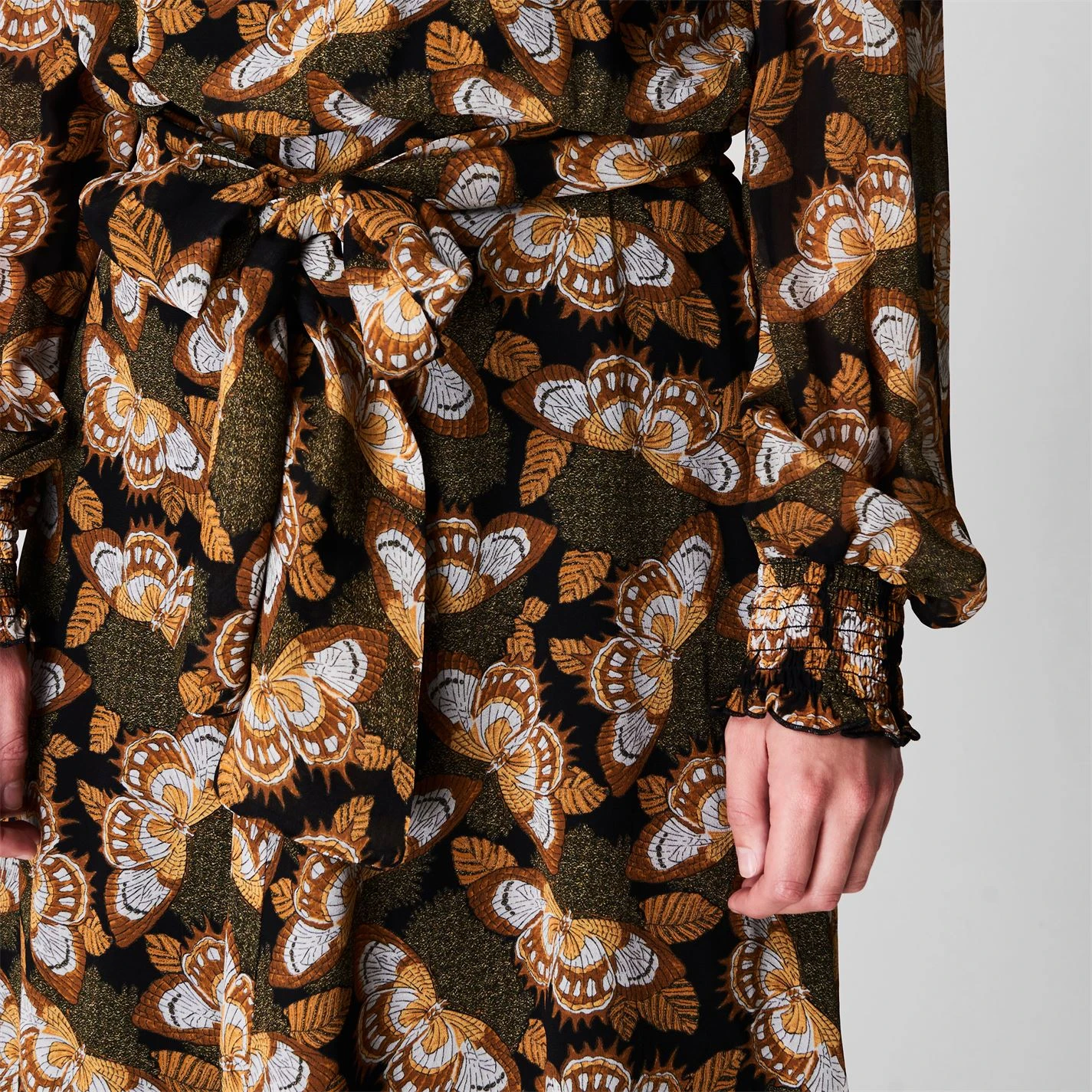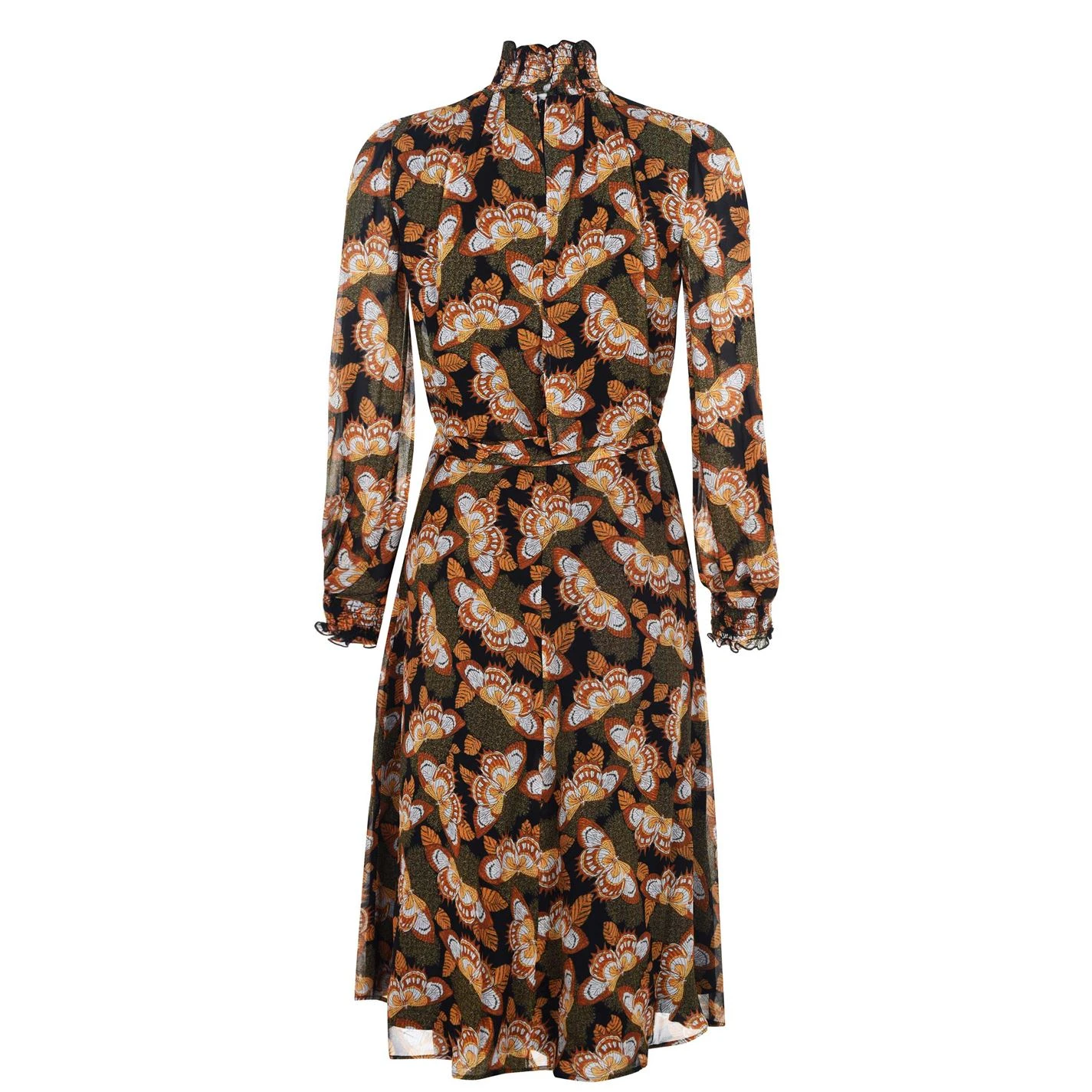 Elevate your wardrobe with the Marella Epopea Dress. The design features long cuffed sleeves, a high neck and a waist tie to create a flattering shape. The dress falls just below your knees with the black and brown print making this piece perfect during Autumn/Winter.