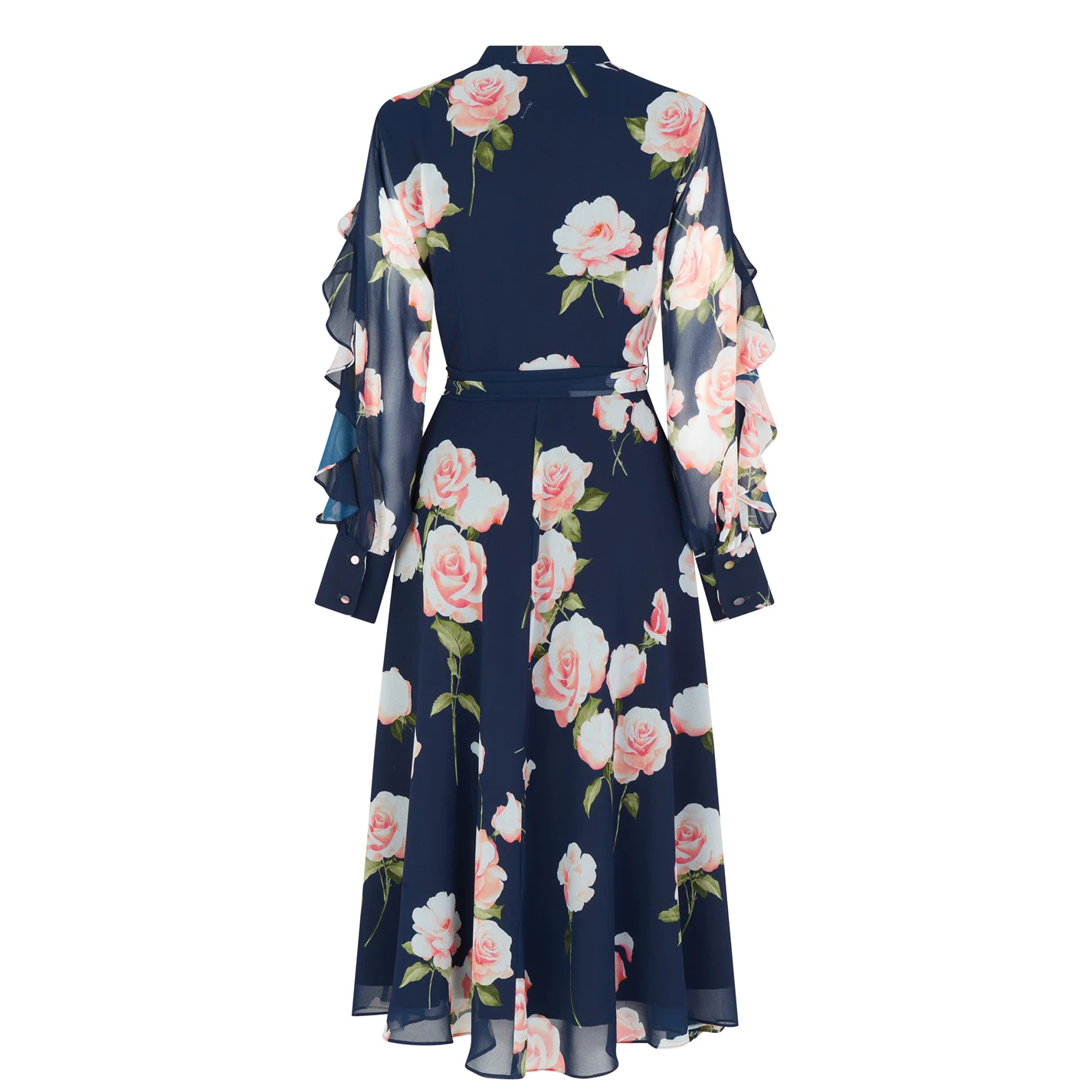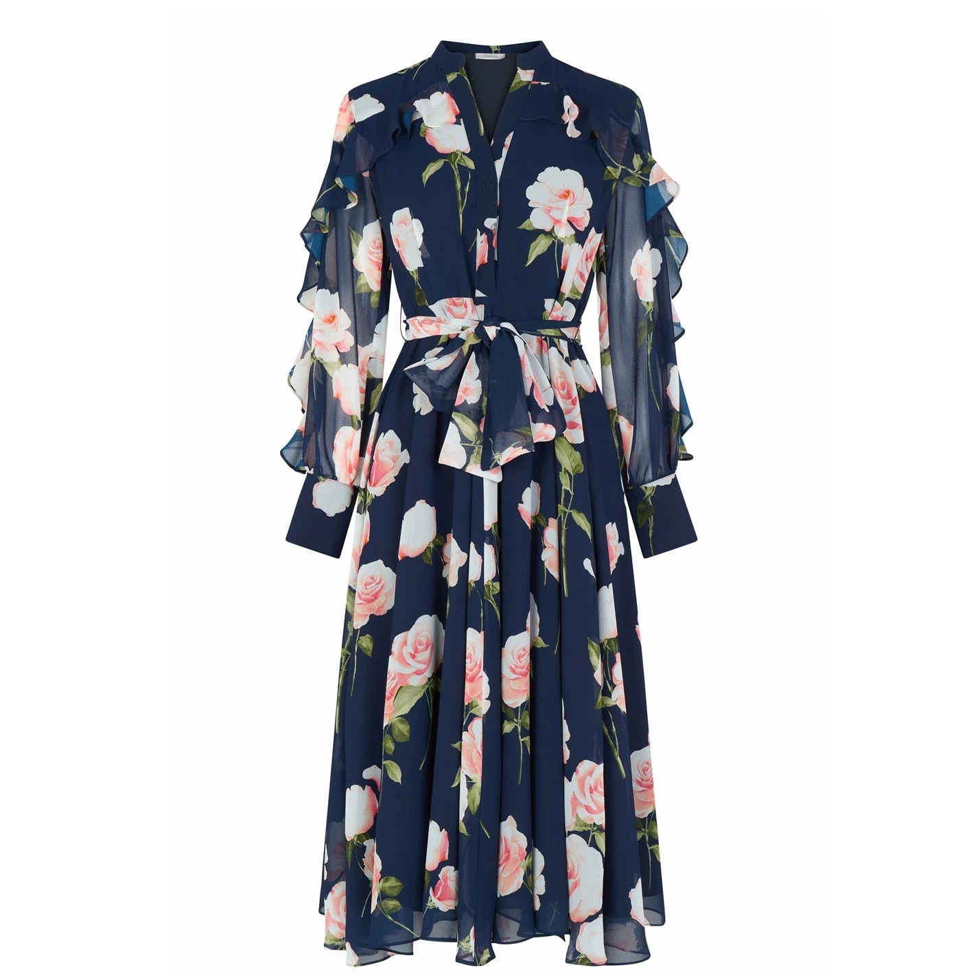 Refresh your occasion wear with the Livorno Maxi Dress brought to you by Marella. Crafted from a lightweight Polyester fabrication boasting a sheer finish with double lined details, this calf length silhouette boasts an all-over floral print for a feminine allure. Styled in a fit and flare cut with a tie fastening to the waist for a figure hugging look, this dress is complete with a rounded collar, button fastening and ruffled trims to the bodice and long sleeves.