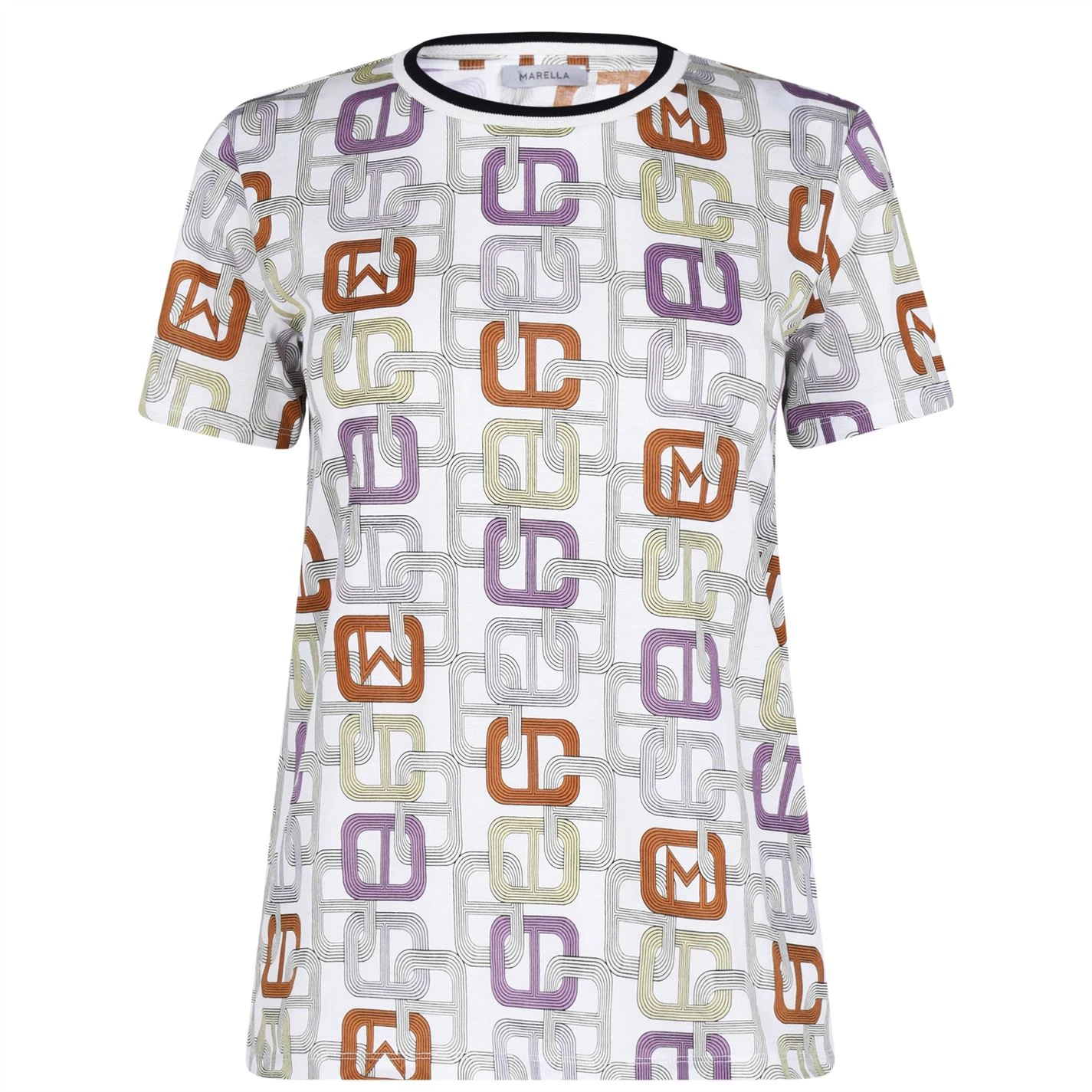 Designed with a retro inspired print throughout, the Marella Conico T Shirt features a colourful aesthetic, short sleeves and a contrast ribbed crew neck for a classic and flattering look. Made from 100% Cotton, this lightweight piece will become a go to for spring summer casual wear.